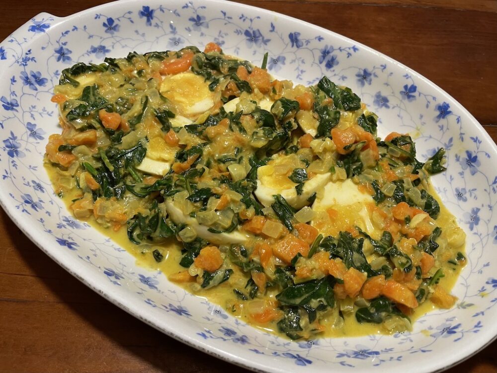 Curry van wortel, spinazie en ei