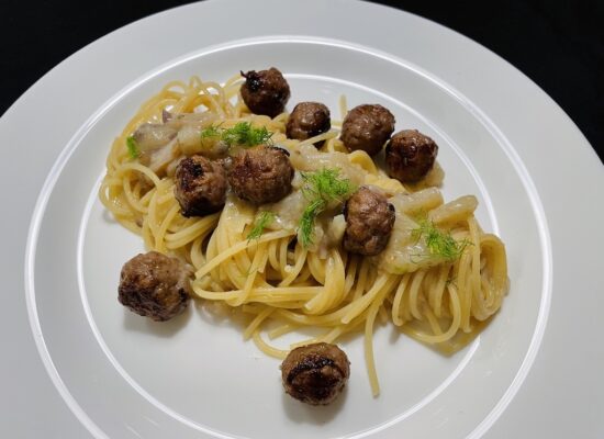 Spaghetti met venkelsaus en kruidige gehaktknikkertjes